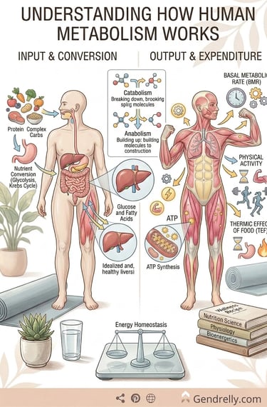 Metabolism refers to all the chemical reactions in the body that keep you alive and functioning. These processes convert the calories you consume into energy used for breathing, circulating blood, repairing cells, and moving your muscles.