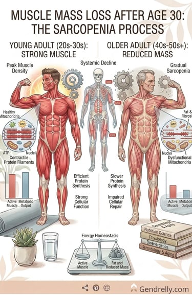 Without regular strength training, people may lose 3–8% of muscle mass per decade after age 30.